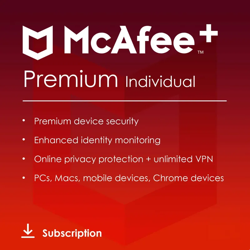 McAfee+ Premium Individual is a comprehensive protection suite designed to secure your devices and safeguard your identity. It combines powerful real-time antivirus protection with identity monitoring and privacy tools to defend against malware, ransomware, phishing, and data breaches.